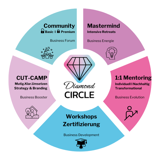 Im DIAMOND CIRCLE dreht sich alles um die Themen Umsetzung, Trends und Sichtbarkeit. Das DIAMOND CIRCLE Angebot ist vielfältig. Es erstreckt sich von einer individuellen Beratung, über Präsenz-Workshops sowie einer einwöchigen Mastermind an internationalen Standorten bis Community-Masterclass mit ganz intensivem Austausch mit Gleichgesinnten sowie unseren Top-Expert:innen.